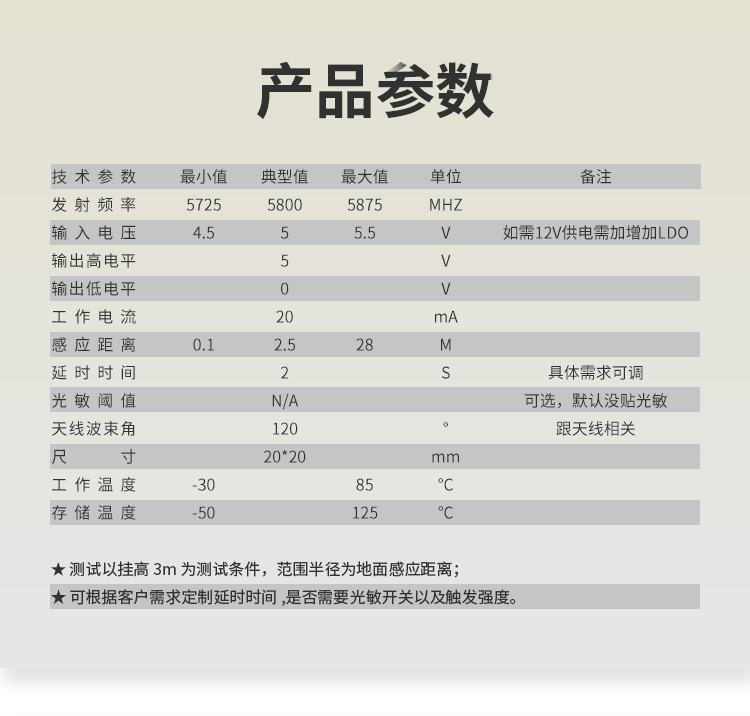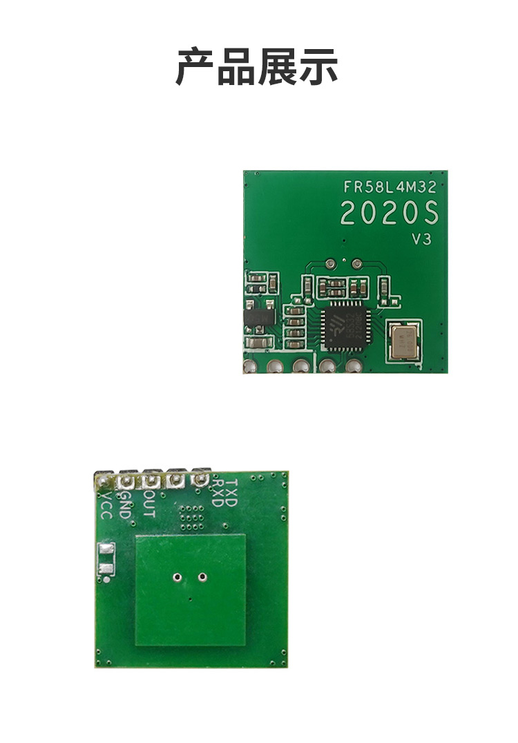 FR58L4M32-2020S(A)是飞睿智能推出的高性能 5.8G 雷达传感器,雷达模块利用多普勒原理,通过天线发射高频电磁波并接收初期反射波,以此判断覆盖范围内物体的移动,给出相应电信号。模块尺寸 20*20MM该芯片集成了 5.8G 微波电路、中频放大电路以及信号处理器,集成度高且生产一致性好,模块内置 32 位 MCU和收发天线,大大提高了传感器的感应性能。